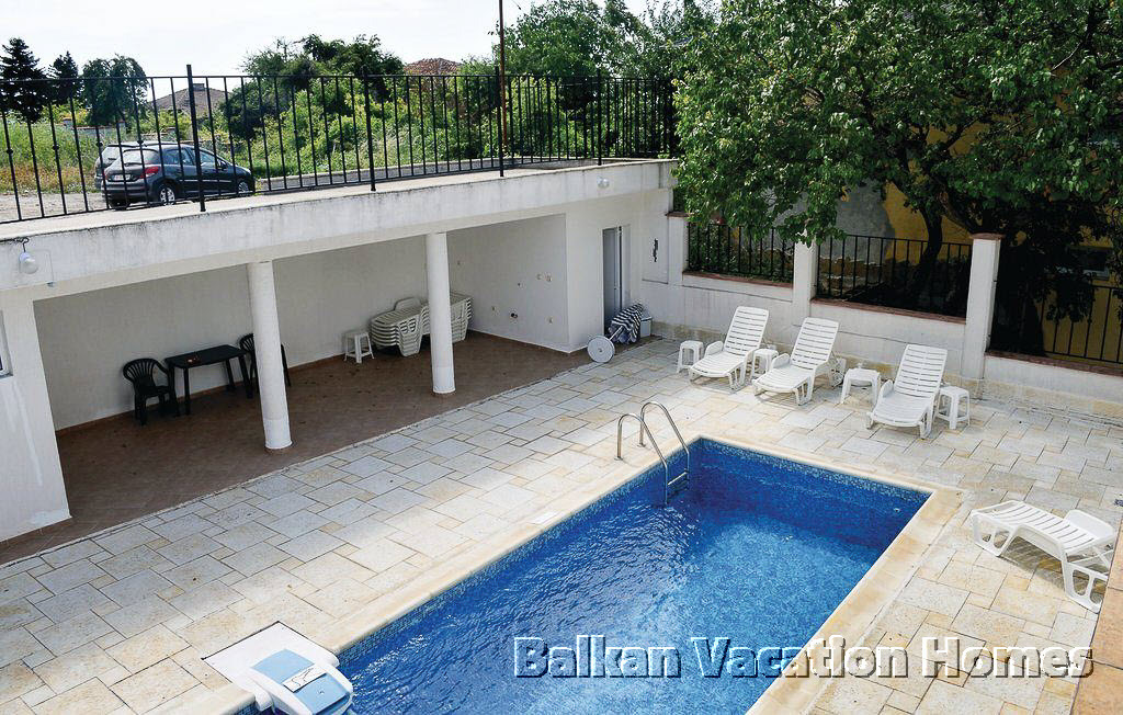 Комплексът разполага със споделена зона около басейна с шезлонги.
