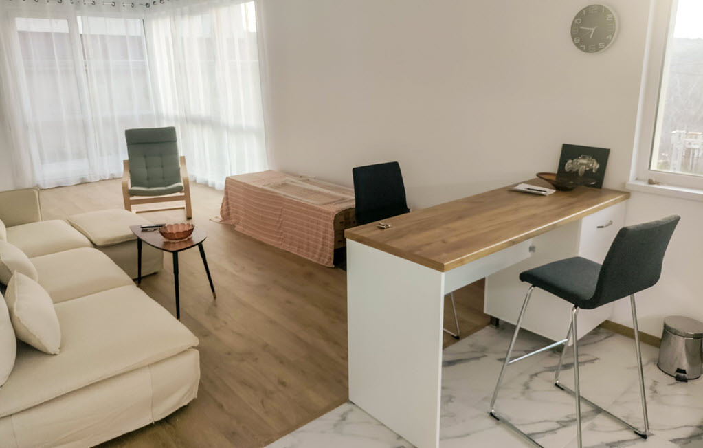 Апартаментът се намира на партерен етаж и има гледка към Черно море с Варна на заден план.
