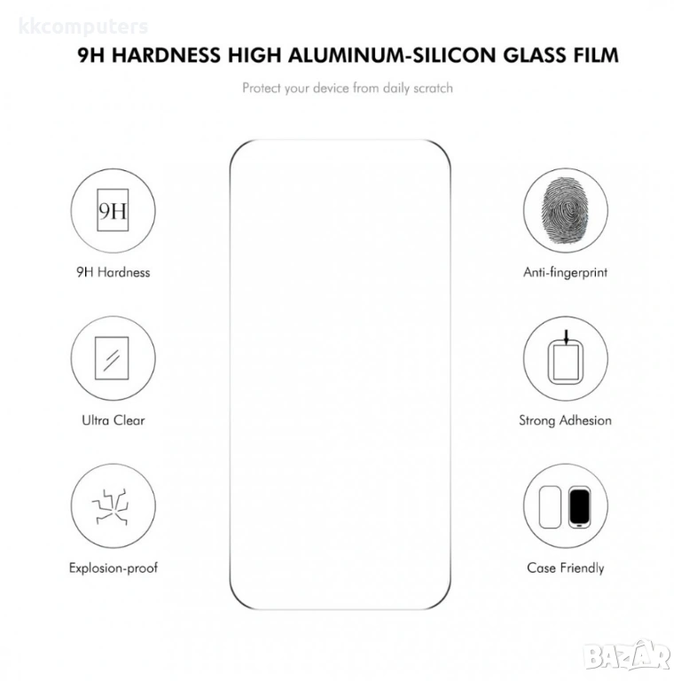 Вградено висококачествено 9H стъкло: Включеното закалено стъкло с твърдост 9H осигурява максимално покритие и защита на екрана.