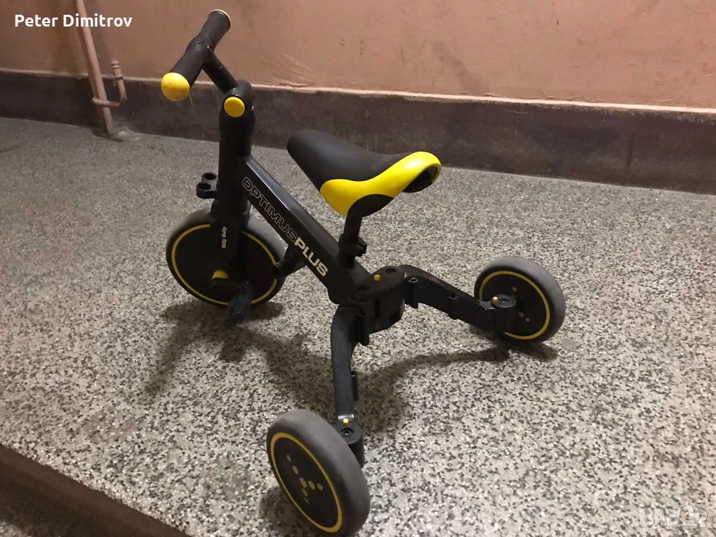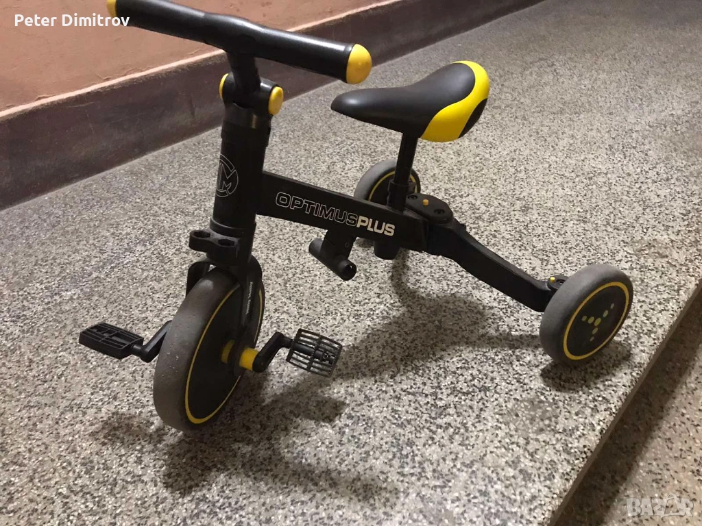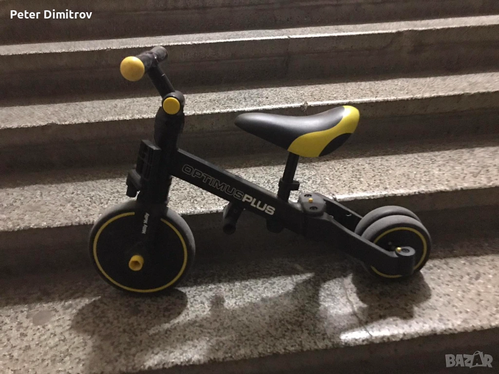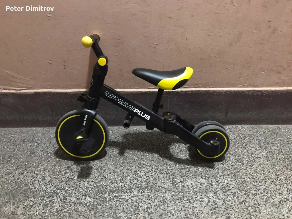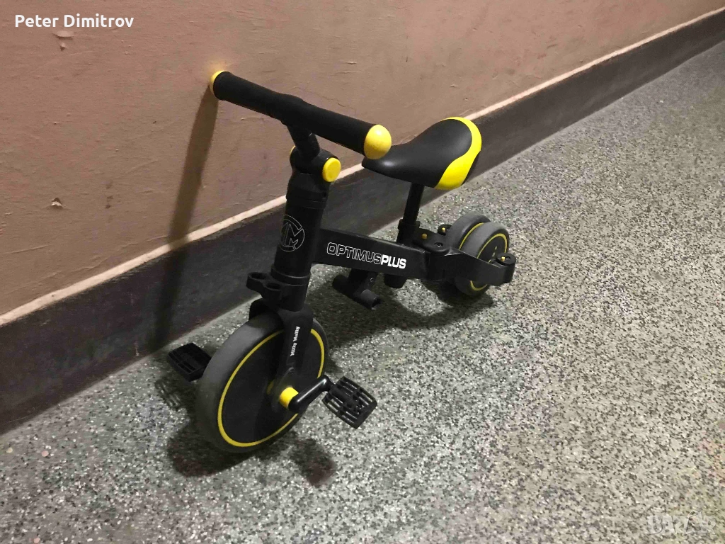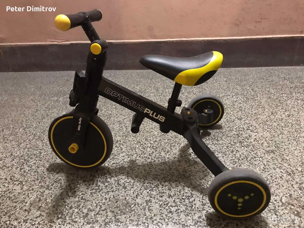 Стабилната триколесна конструкция осигурява безопасност и улеснява придобиването на нови умения. Когато детето вече е усвоило основите на карането, можете да добавите педали или да го промените в класическо колело за баланс.