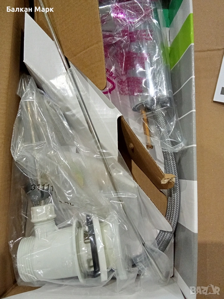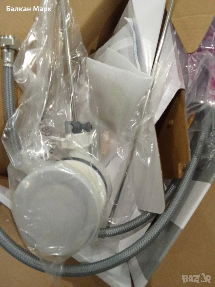Комплектът включва: Смесител, гъвкави връзки, изпразнител (витло) и монтажни елементи.