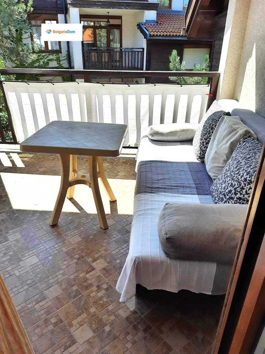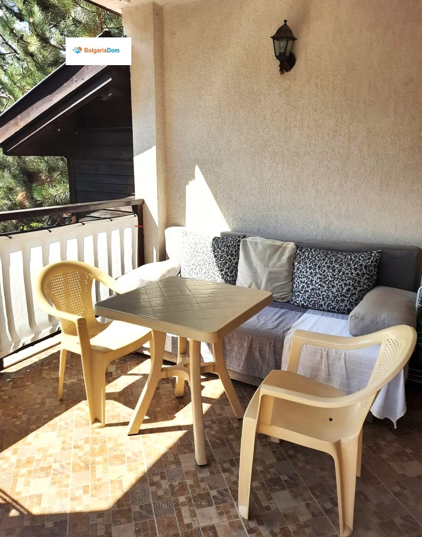 Двуайстният апартамент е с обща площ от 56 кв.м и включва всекидневна с кухненски кът, спалня, баня с душ кабина и тераса с зона за отдих. Апартаментът се намира на 3-ти етаж, напълно обзаведен и в отлично състояние.