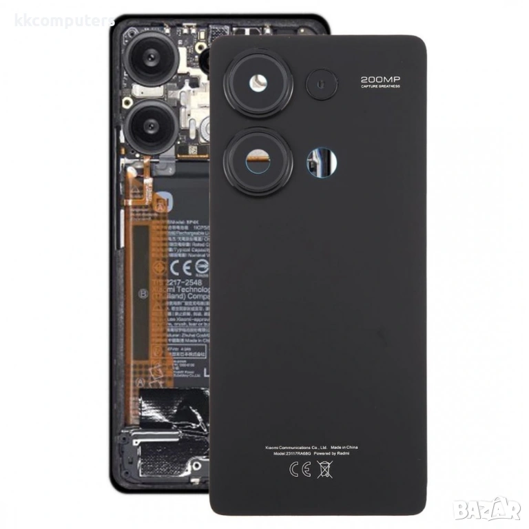 Оригинален заден капак за Xiaomi Redmi Note 13 Pro 4G със стъкло за камерата, предназначен за подмяна на счупен, надраскан или повреден гръб на устройството. Подходящ е за възстановяване на външния вид и нормалното състояние на телефона при износване или повреда на задния панел.