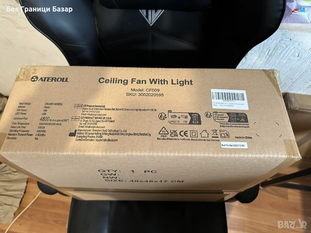 Нов LED таванен вентилатор 4800lm димируем 3CCT + RGB ATEROLL осветление