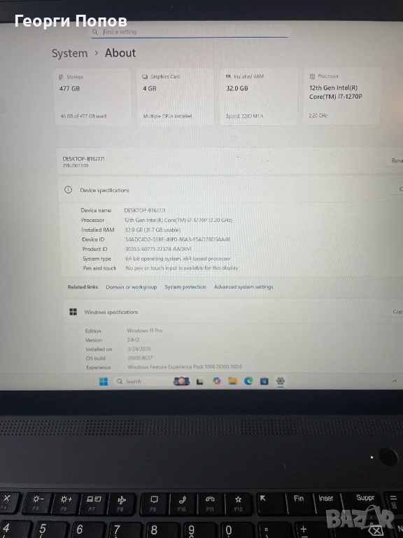 Лаптопът е в страхотно визуално състояние и технически изряден. Преинсталиран с оригинален и лицензиран Windows 11 PRO, готов за работа.
