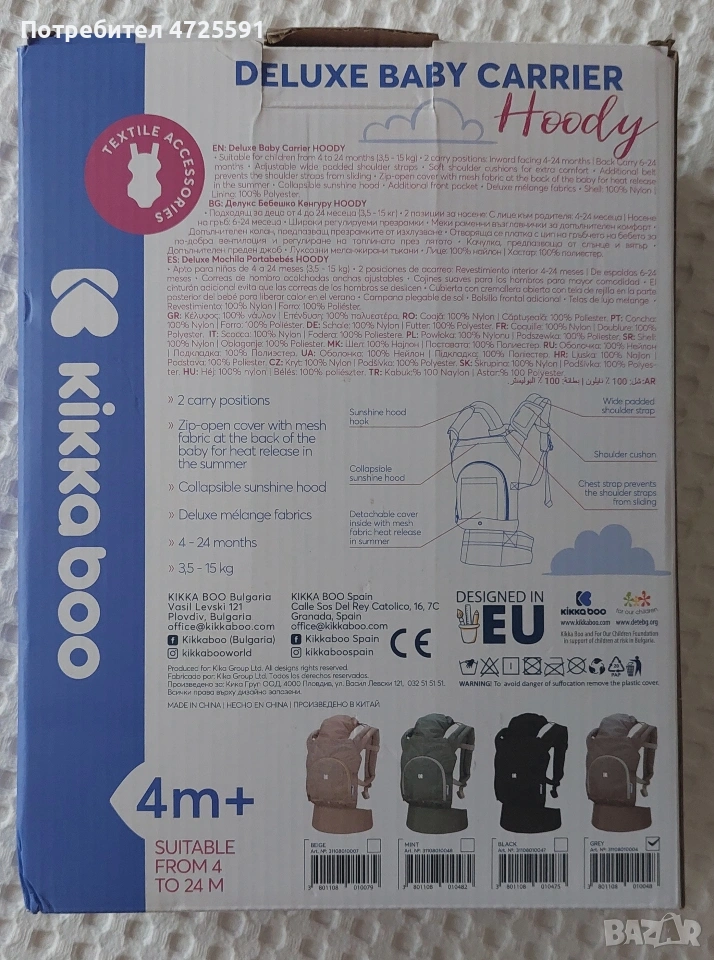 Нова раница/кенгуру Kikkaboo → Обява 54054006