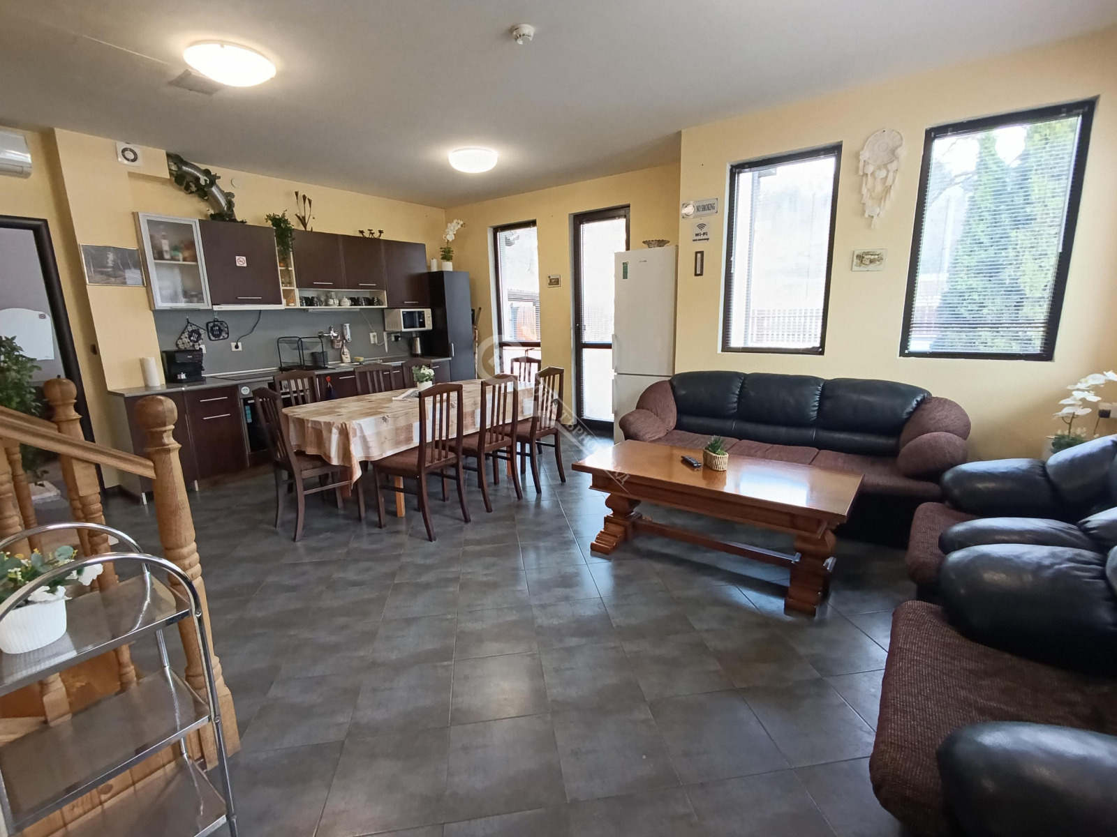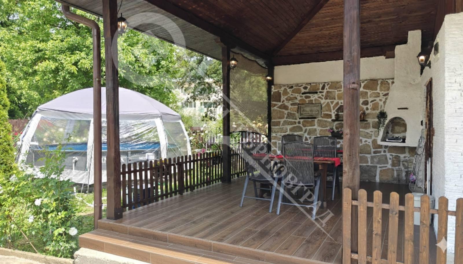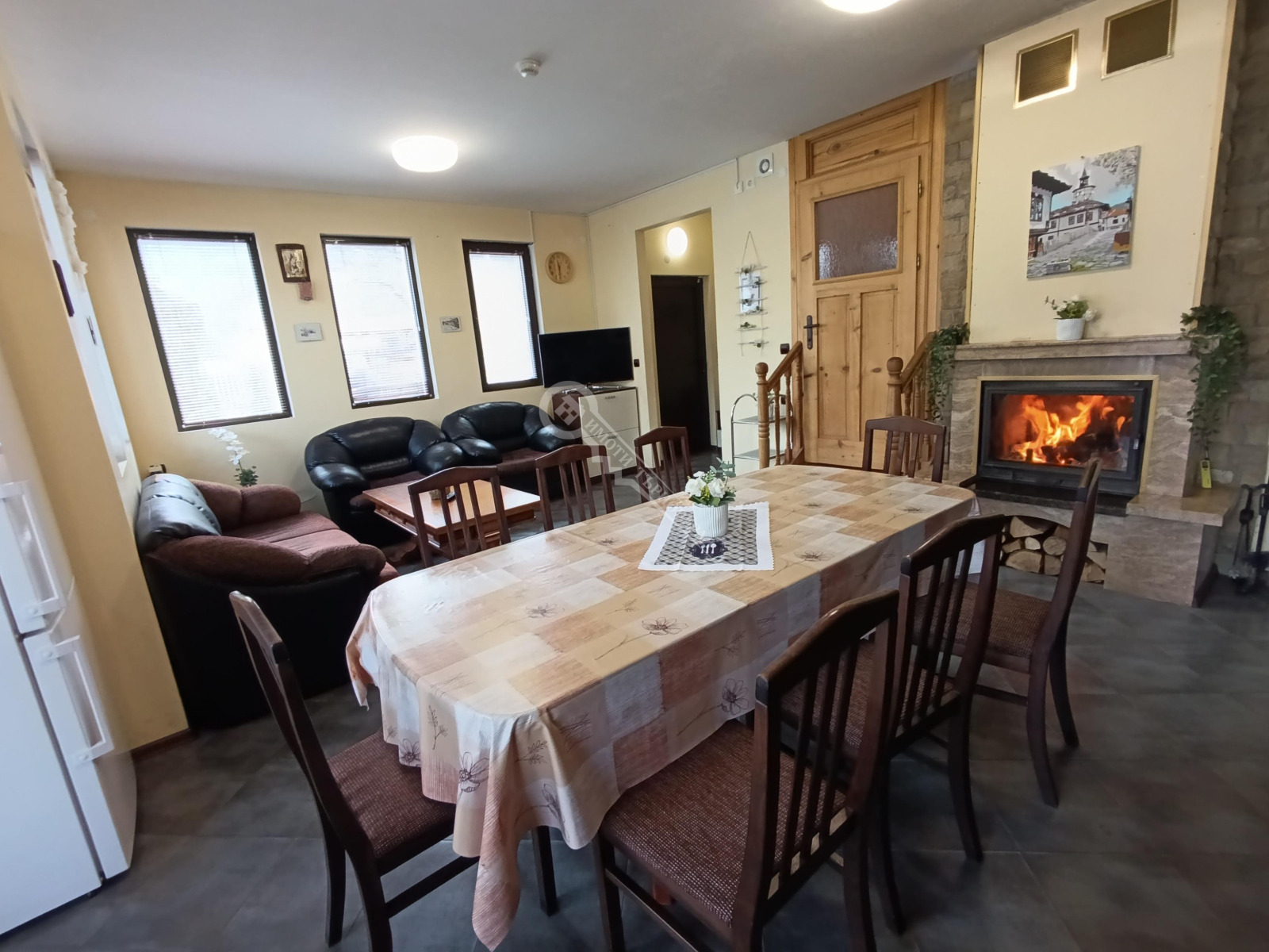 Имоти Търновград Ви представя изключителна инвестиционна възможност две напълно функциониращи къщи за гости в гр. Трявна!Имотът се намира в непосредствена близост до централната част на града, съчетавайки удобството на локацията с тишина, спокойствие и природа. Разположен върху парцел с площ от 673 кв.м, комплексът включва две самостоятелни къщи: 1. Двуетажна къща с площ от 120 кв.м. състояща се от входно антре, просторна дневна с кухненски бокс и действаща камина, от която се излиза на двор и барбекю, баня с тоалетна, килер, както и спалня със самостоятелна баня с тоалетна. По вътрешни стълби се стига до вторият етаж, където са разположени три самостоятелни спални/ всяка със собствена баня с тоалетна/ и коридор. 2. Едноетажна къща с площ от 42 кв.м, състояща се от просторна веранда с барбекю, дневна с кухненски бокс, две спални и баня с тоалетна. Отоплението и охлаждането е решено чрез камина с въздуховоди отопляващи всички стаи, както и климатици във всяка стая. Прекрасен озеленен двор с обособен детски кът, отопляем сезонен басейн с термопомпа, както и паркинг за четири автомобила. Целия имот е ограден с масивна ограда с три портала. Имотът се продава напълно обзаведен и оборудван готов за незабавно ползване или отдаване под наем с доказан доход.Идеален както за семеен бизнес, така и за инвестиция с висока възвръщаемост. Заповядайте на оглед! Оферта 17684