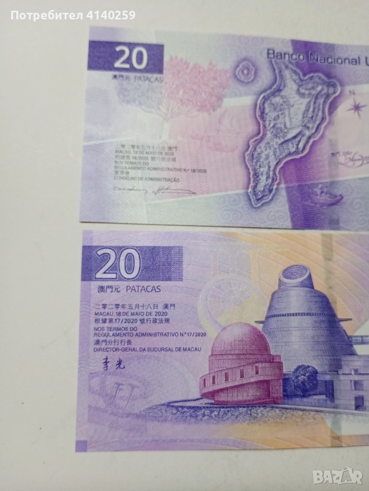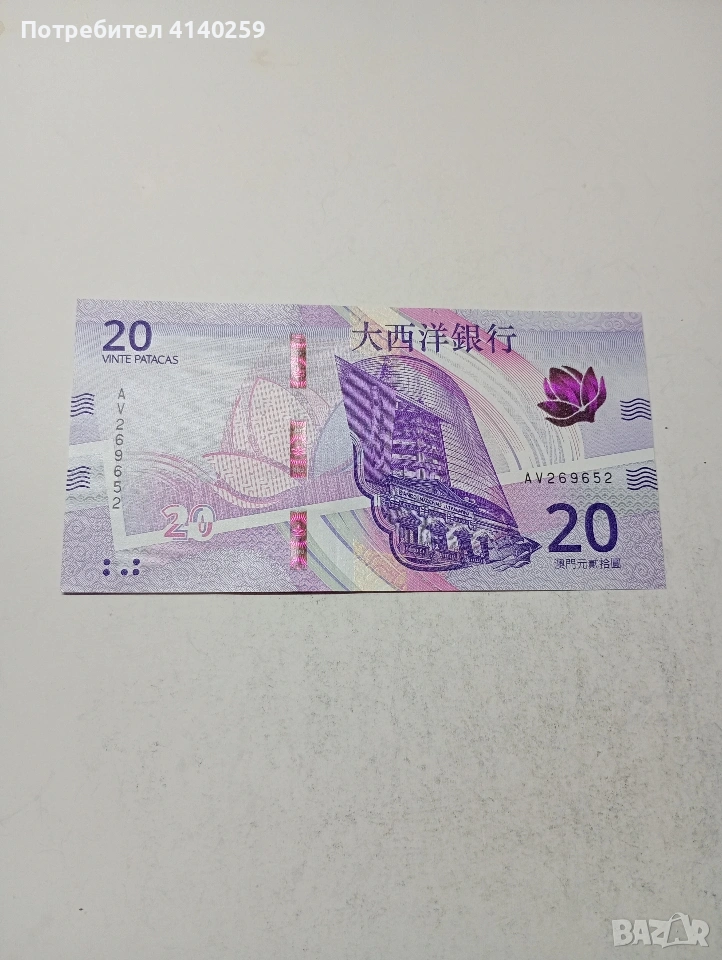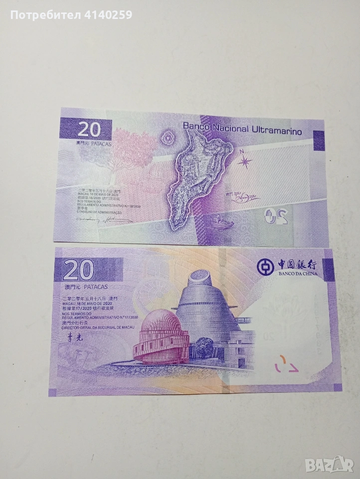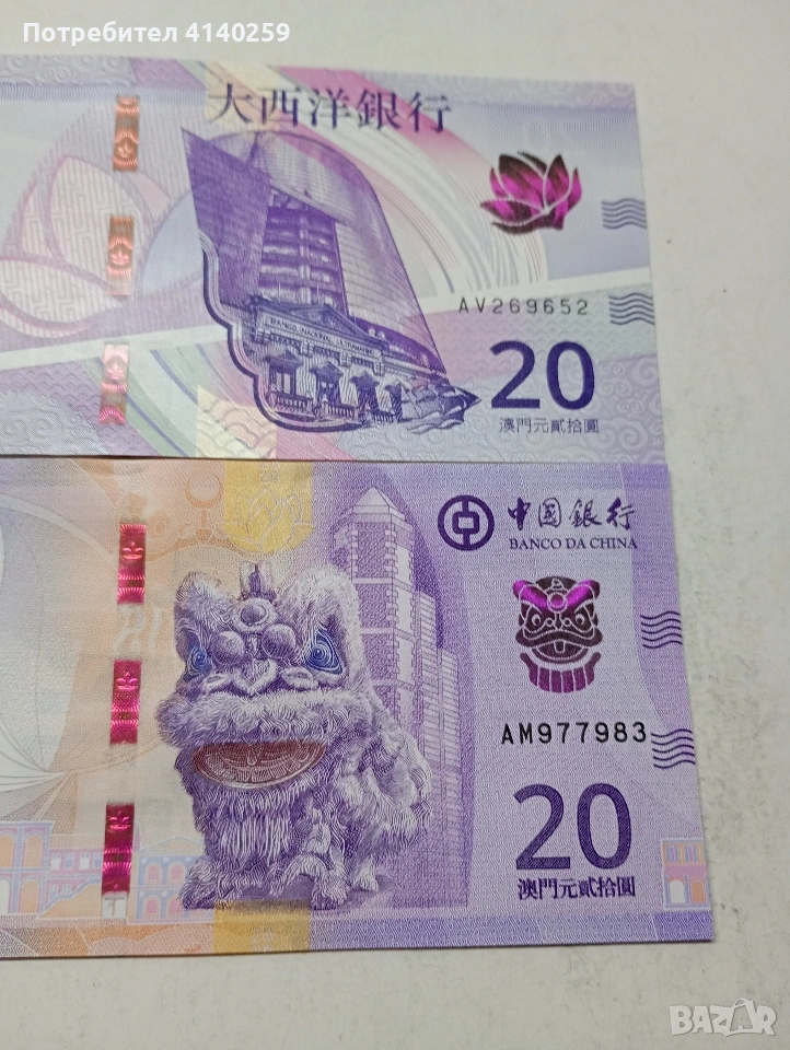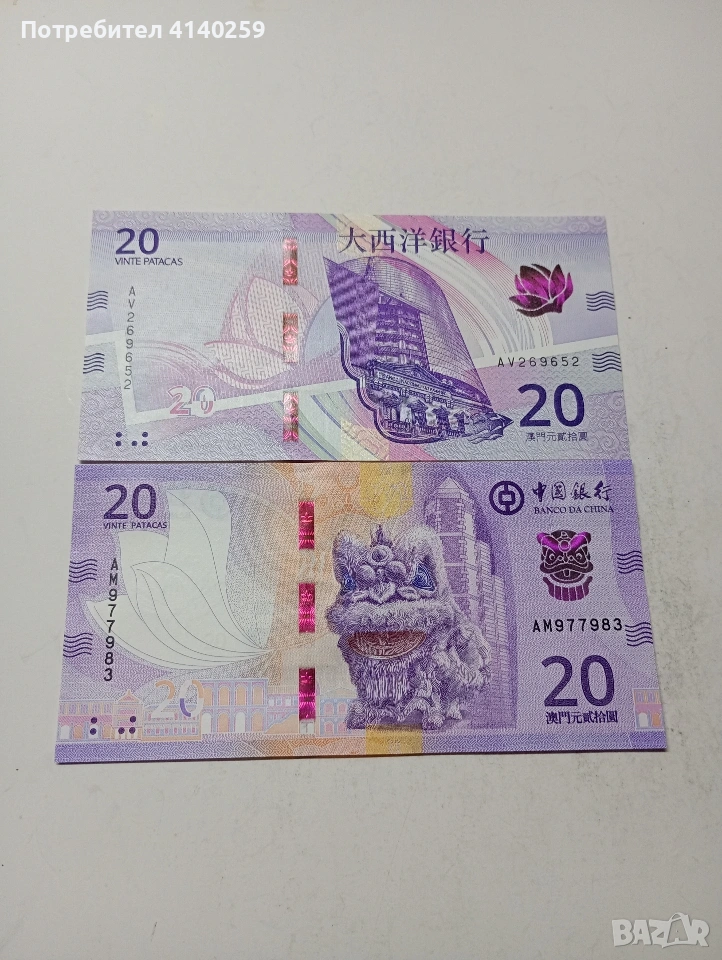 МАКАО БАНКНОТИ 20 ПАТАКА 2020 Г СЪСТОЯНИЕ НОВО ЦЕНА ЗА 2 БРОЯ. ( 1 БРОЙ 9 ЕВРО) ПОЛУЧАВАЙТЕ СНИМАНИТЕ БАНКНОТИ РАЗГЛЕДАЙТЕ ДРУГИТЕ МИ ОБЯВИ ДА КОМБИНИРАТЕ ДОСТАВКА ЕКОНТ ЗА ВАРНА ЛИЧНО