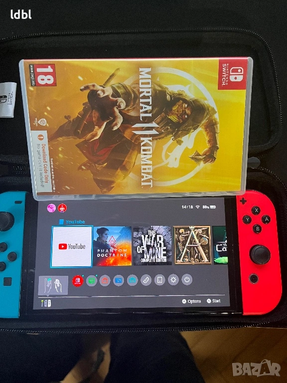 Към конзолата има калъф hori , карта памет 64gb и играта mortal kombat 11 . Тък като играта е дигитална съм оставил профила с играта .