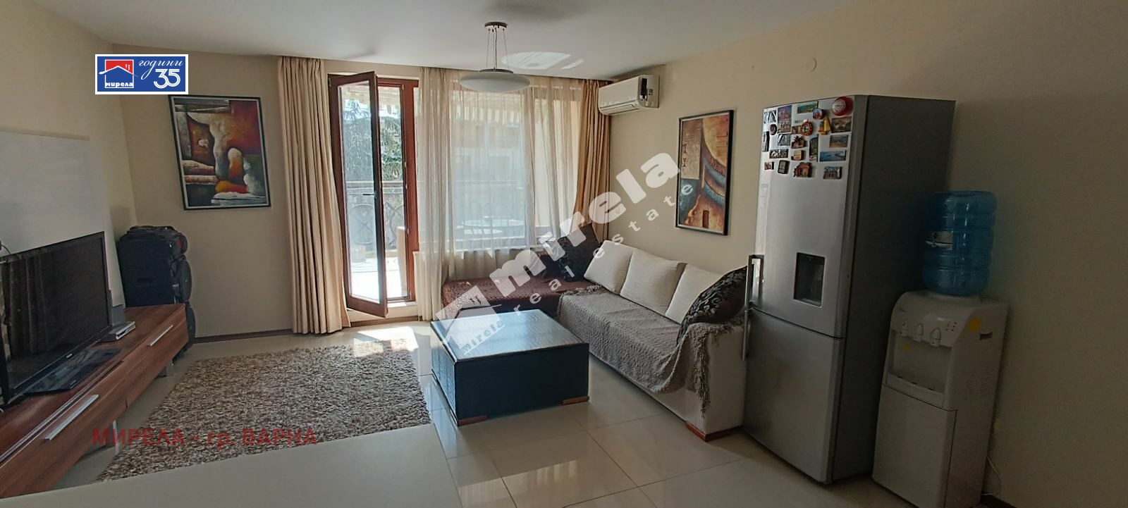 Имотът се предлага напълно обзаведен с качествени и стилни мебели, оборудван с електроуреди от висок клас. Във всяка стая има климатик и PVC дограма с многокамерен профил.