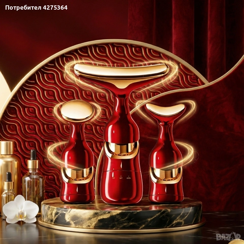 Електрически 4D масажор за лице,шия и очи 3в1–Анти-ейдж уред с 3 сменяеми глави и лифтинг ефект → Обява 54054315