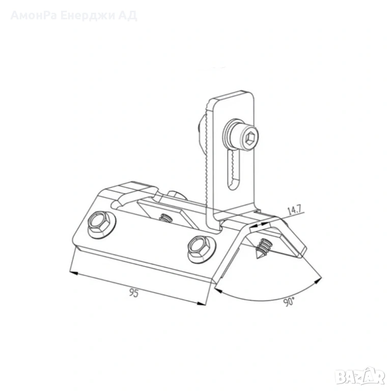 Скоба за трапецовиден метален покрив 08 в комплект с 4 самопробивни винта, имбус болт, федер шайба и