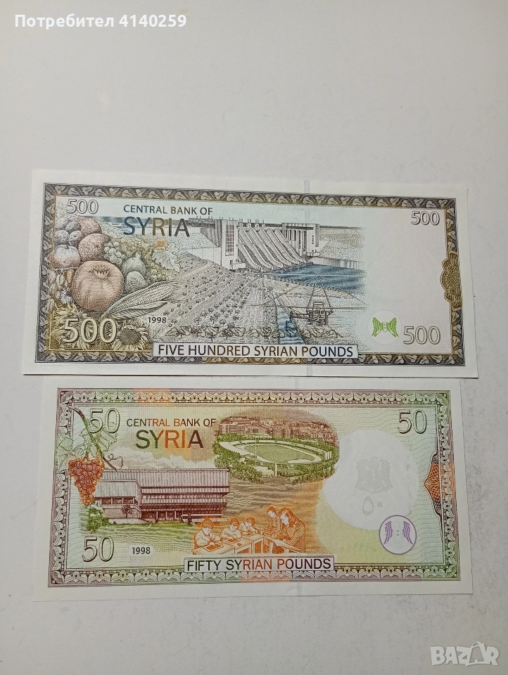СИРИЯ БАНКНОТИ 500 ПАУНДА 1998 Г 20 ПАУНДА 1998 Г СЪСТОЯНИЕ НОВО ЦЕНА ЗА 2 БРОЯ ПОЛУЧАВАТЕ СНИМАНИТЕ БАНКНОТИ РАЗГЛЕДАЙТЕ ДРУГИТЕ МИ ОБЯВИ ДА КОМБИНИРАТЕ ДОСТАВКА ЕКОНТ ЗА ВАРНА ЛИЧНО