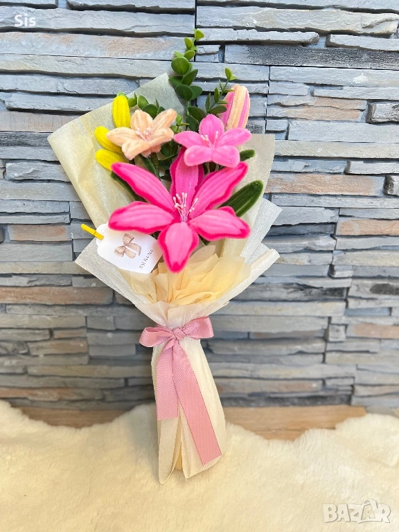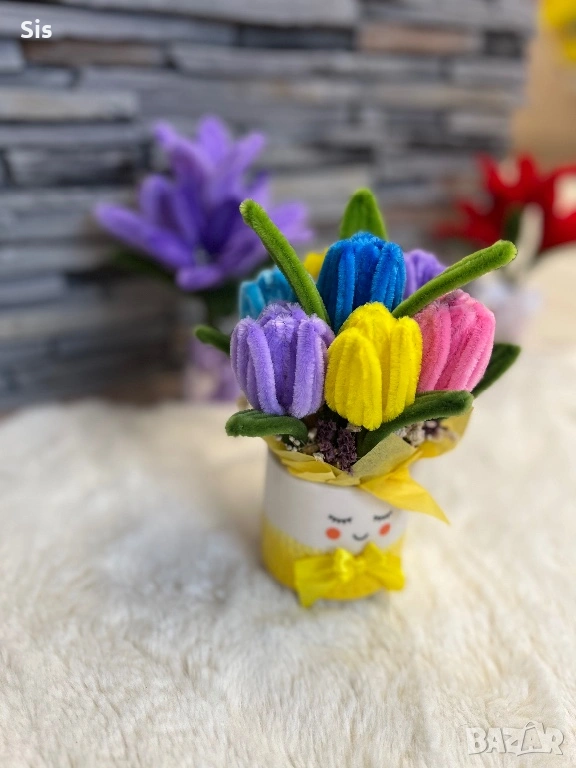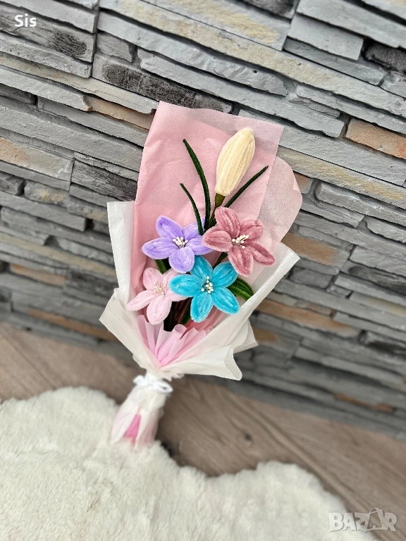 Ръчно изработено букети. Пухкави, цветни и остават завинаги! Цени от 3€