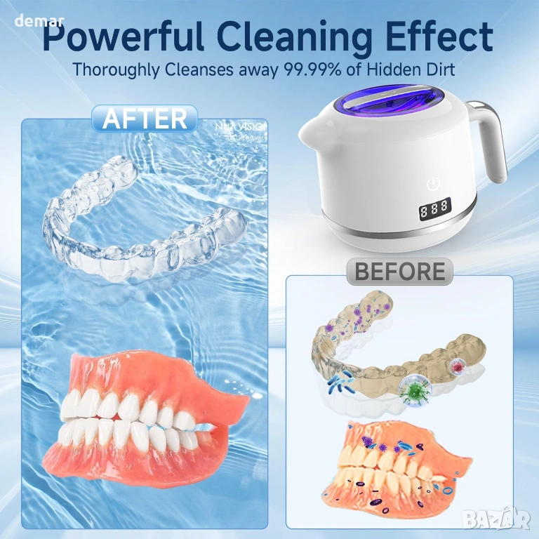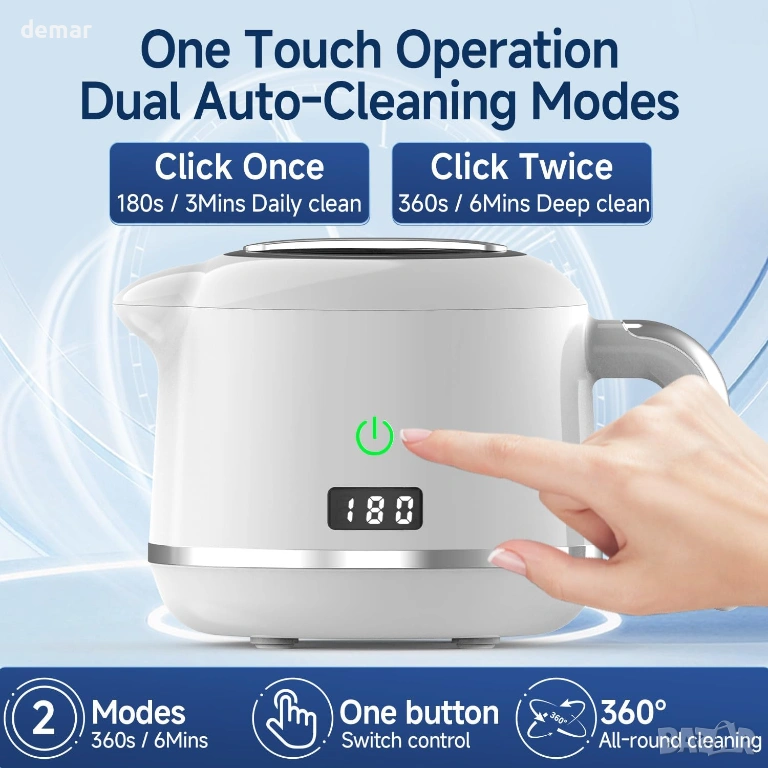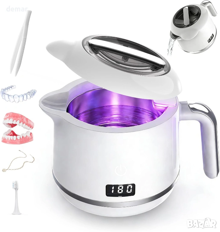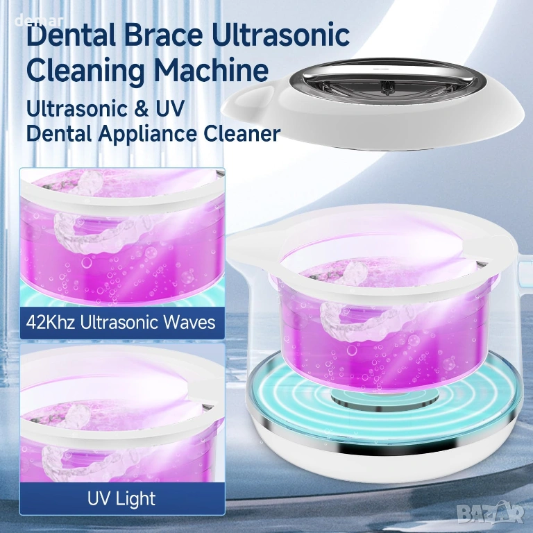 Тази ултразвукова почистваща машина използва високочестотни вълни с честота 42 kHz, комбинирани с двойни UV-C светлини, за да осигури дълбоко почистване и хигиенична грижа за дентални апарати и бижута, като ефективно премахва плака, миризми и остатъци без ръчно търкане. Тя произвежда микроскопични мехурчета, които достигат до малки пукнатини за цялостно, но нежно почистване, предотвратявайки надраскване на деликатни предмети. Издръжливият резервоар от 180 мл е изработен от устойчива на корозия неръждаема стомана 304 и разполага с прозрачен прозорец за лесно наблюдение. С прости сензорни контроли, потребителите могат да избират между бързи ежедневни или по-дълбоки цикли на почистване, а тихата работа гарантира минимално смущение. Компактният и преносим дизайн я прави подходяща както за домашна употреба, така и за пътуване, предлагайки удобно решение за почистване „всичко в едно“.