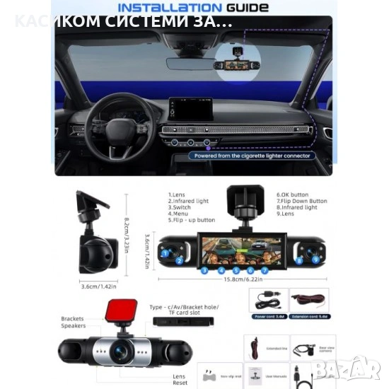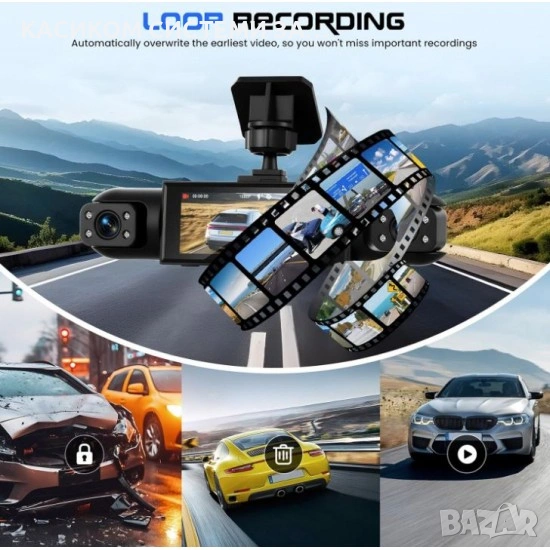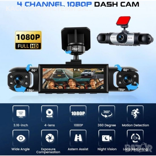 4-канален видеорегистратор 1080P – 360° Dashcam с GPS, 4 камери, 3.16" дисплей, нощно виждане