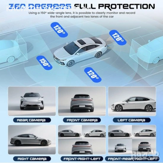 4-канален видеорегистратор осигурява пълно покритие около автомобила с четири камери – предна, задна, лява и дясна. Благодарение на 360° заснемане, устройството записва всяка ситуация по време на шофиране и паркиране, като гарантира максимална безопасност и контрол.