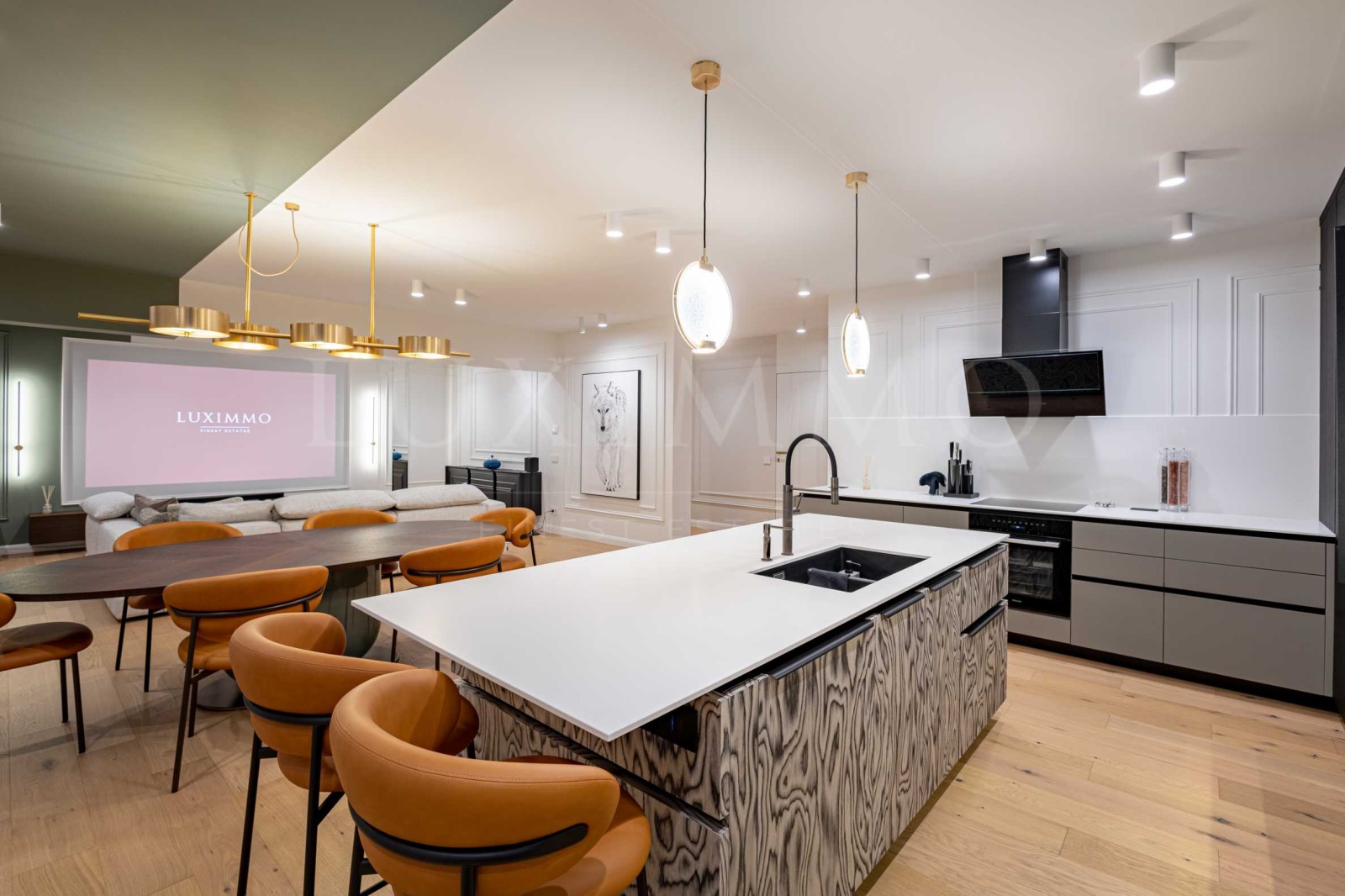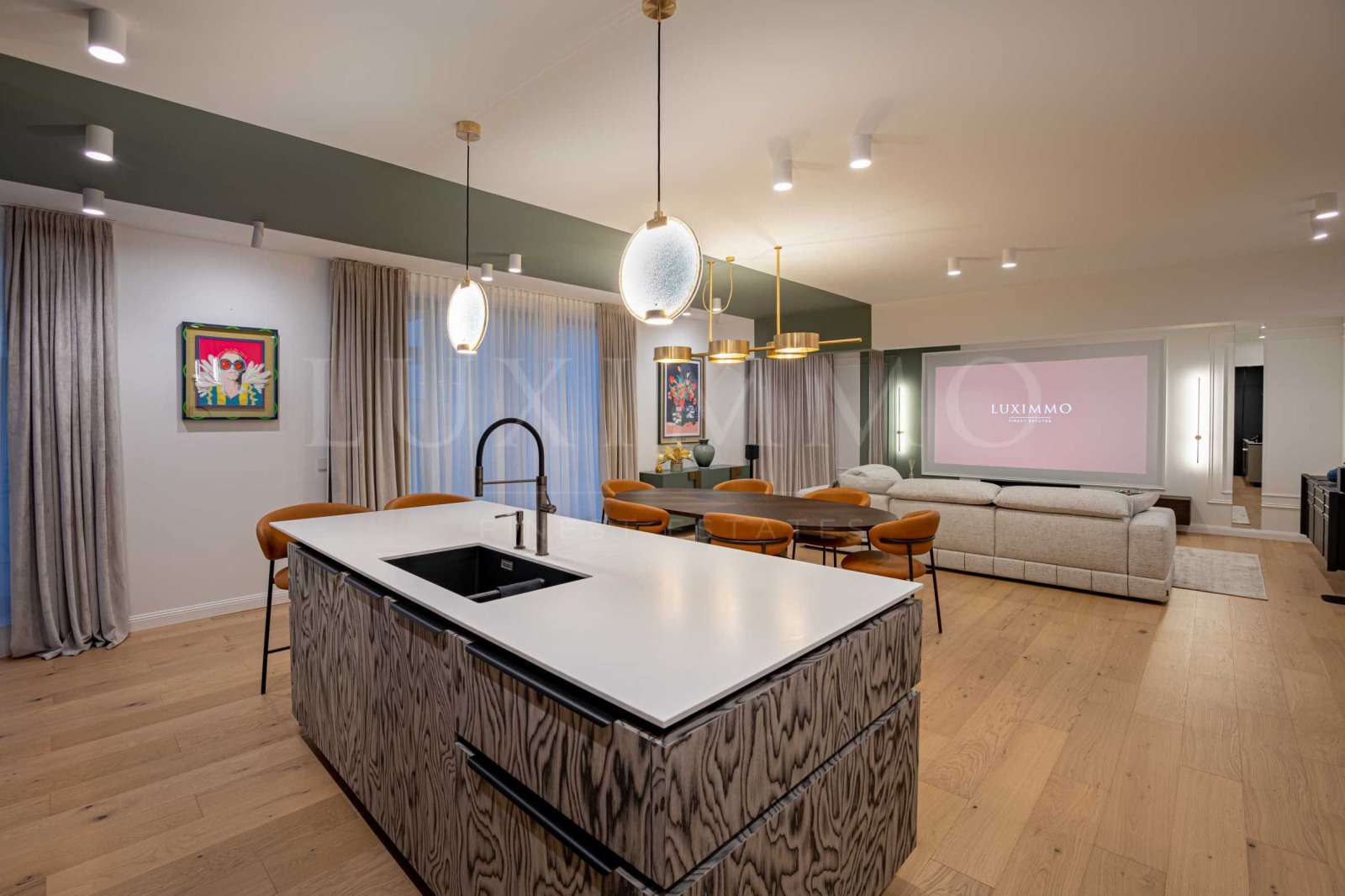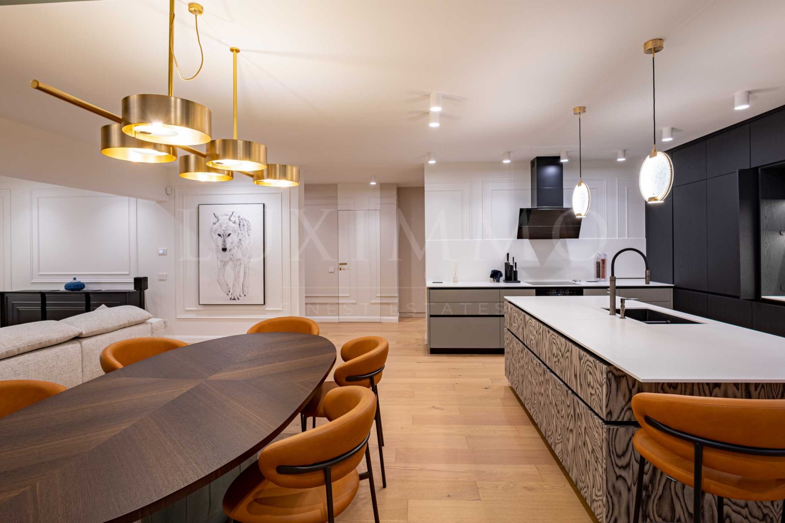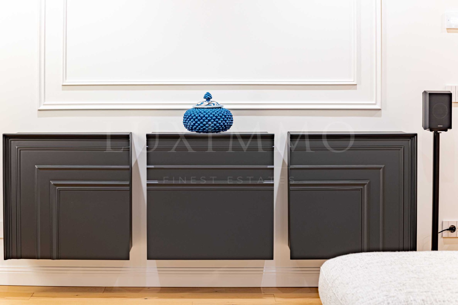 Апартаментът се откроява със стилен интериор със заложени качествени италиански довършителни материали: