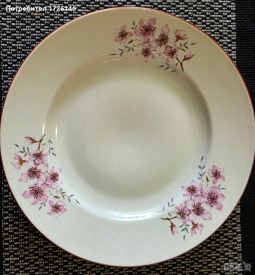 Порцеланова чиния дълбока с червен кант на Китка модел ябълков цвят → Обява 54054791