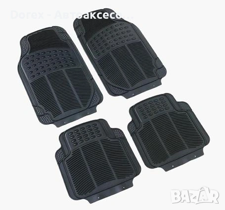 Практичен комплект черни автомобилни стелки, изработени от устойчив PVC материал. Подходящи за повечето автомобили и осигуряват надеждна защита на пода от замърсявания и износване.
