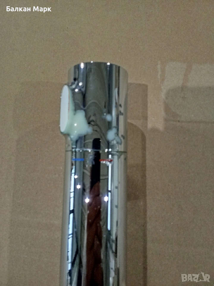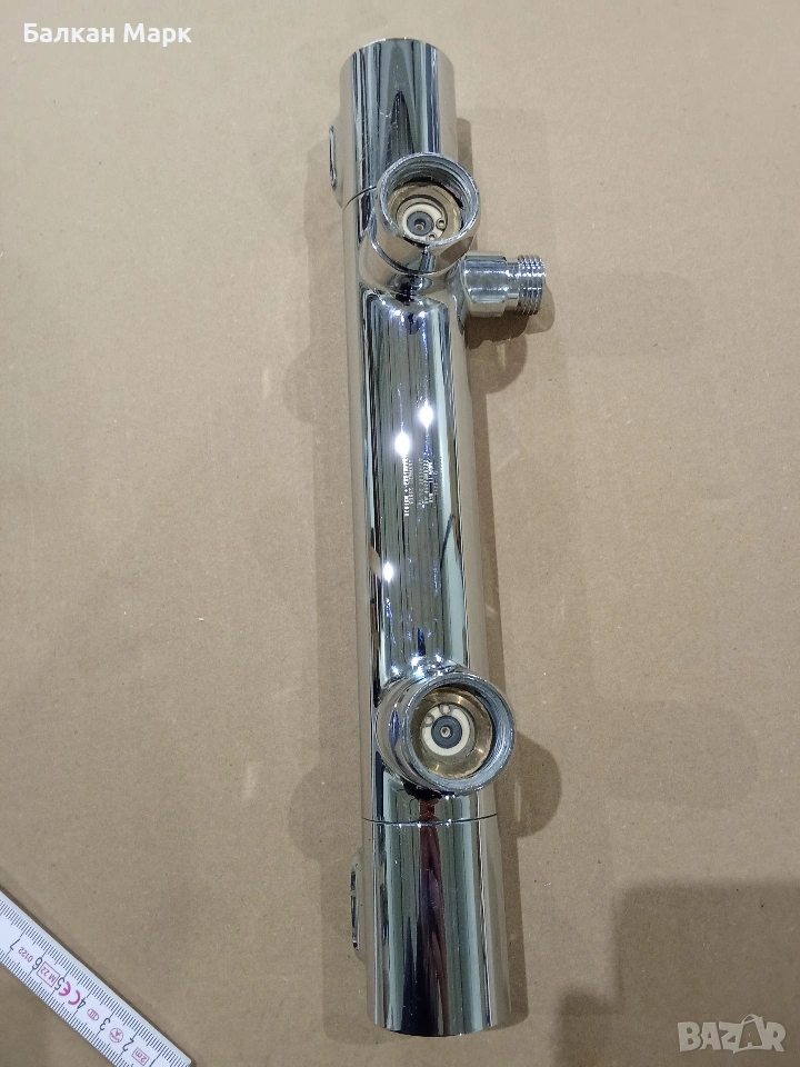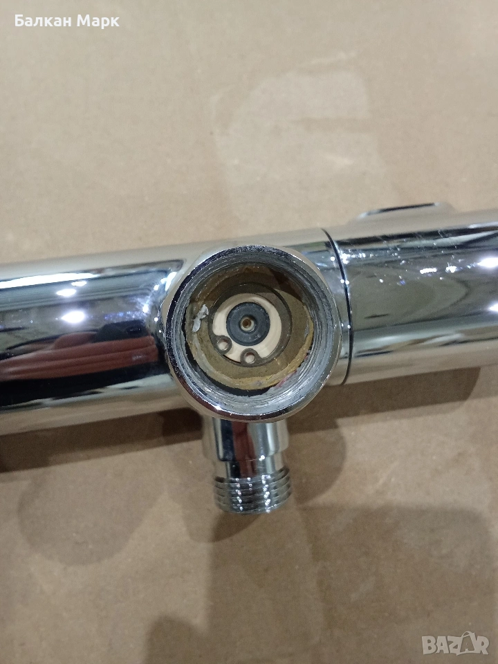ВАЖНО: Смесителят е използван. Има козметични забележки (изтъркване на хромовото покритие), показани на снимките. Механично всичко функционира (бутони и ръкохватки се движат плавно, без странични звуци), но продуктът не е тестван под водно налягане. Покупката е на ваш риск, като цената е съобразена с това.