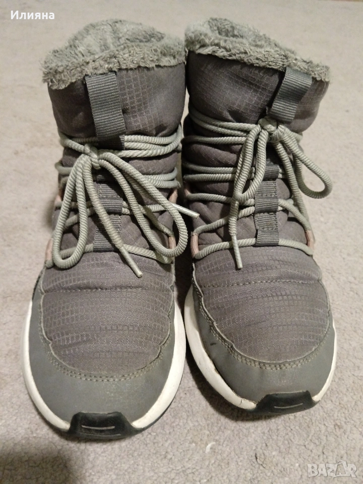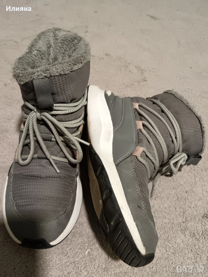 Много удобни зимни обувки с топла, мека подплата. Материалът отвън е водонепромукаем. Нормални следи от употреба. Подметката е със специална грайферна форма с цел максимално добро сцепление върху мокра и хлъзгава повърхност. Номер 37.5