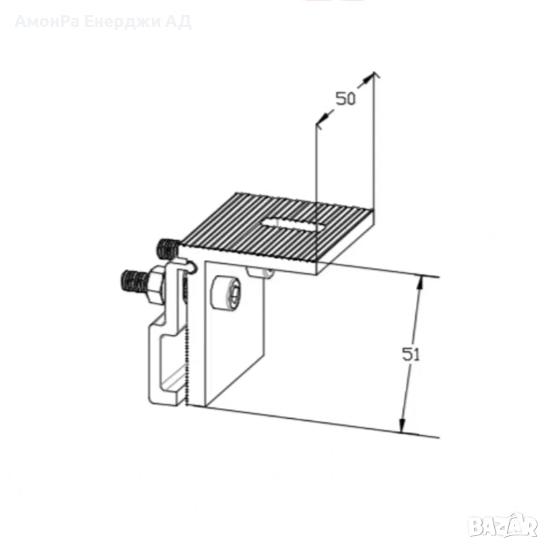 Алуминиева скоба AR2-MRH14 за метален покрив в комплект с Т болт