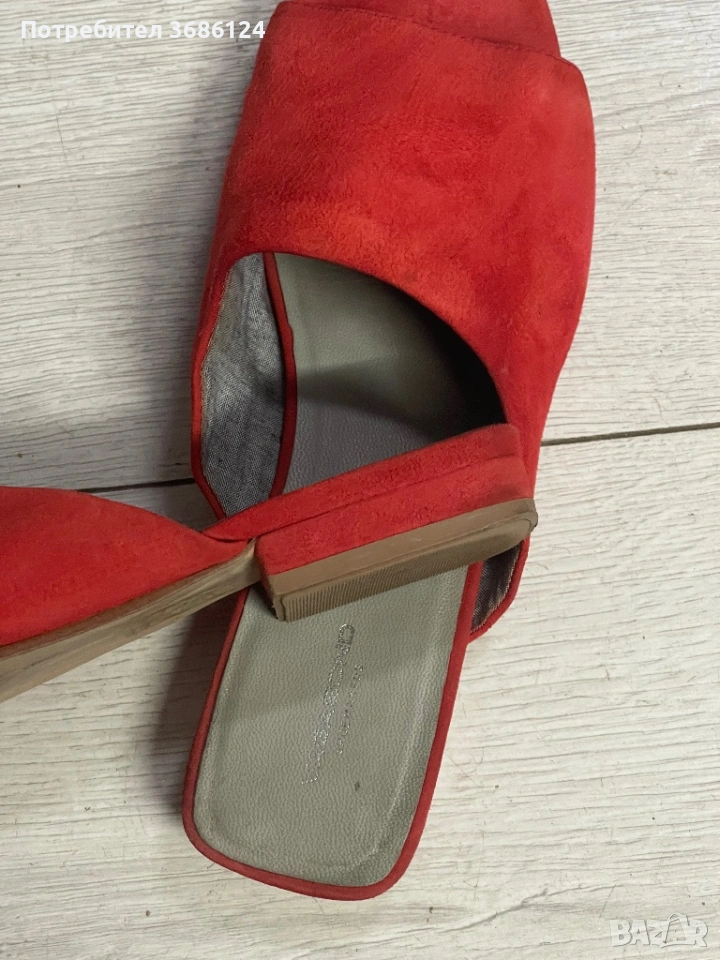 Чехли BAGABOND естествен велур имат лека забележка на десният крак което е съобразено с цената .Дължина на стелката26 см цвят червено оранжев .