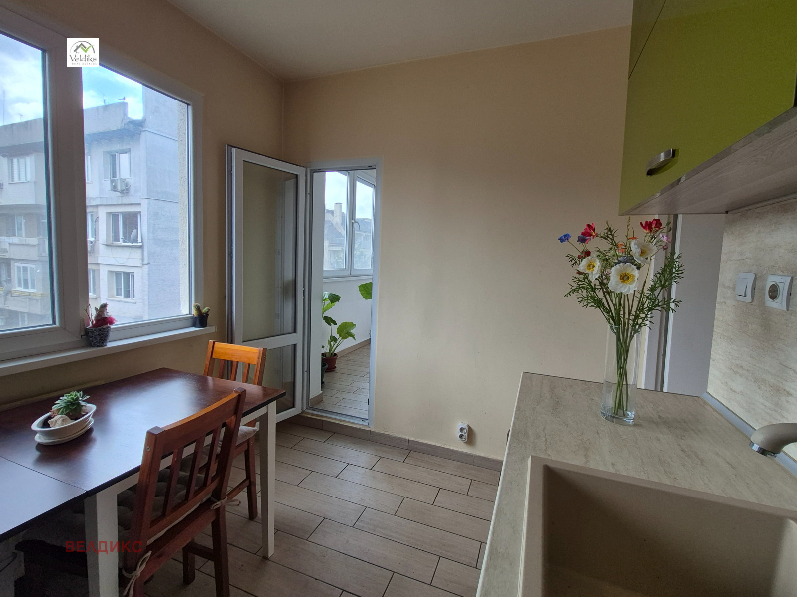 ' Велдикс ' представя двустаен апартамент за продажба. Площ по НА 65.66 кв.м. и мазе 4.59 кв.м. Местоположение: намира се на тиха уличка, с озеленено околоблоково пространство, до бъдеща метростанция, на 5 минути пешеходно разстояние до парк 'Гео Милев', бул. 'Шипченски проход', учебни заведения, детска градина, Скай Сити център, спирки на наземен градски транспорт, множесто търговски обекти и др. Апартаментът е вътрешен с южно изложение. Разпределение: Г - образен коридор, спалня с излаз на просторен балкон, дневна с усвоен балкон, кухня, санитарно помещение. Продава се с обзавена и оборудвана кухня без останалото обзавеждане видимо на снимките! Банята е за основен ремонт!