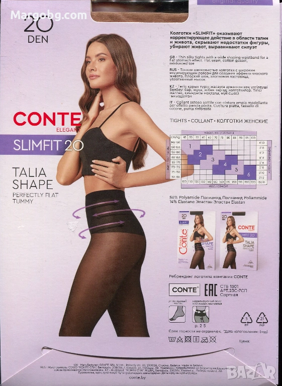 Чорапогащник Conte Slimfit 20 den с оформящ ефект. Стилно оформяща се