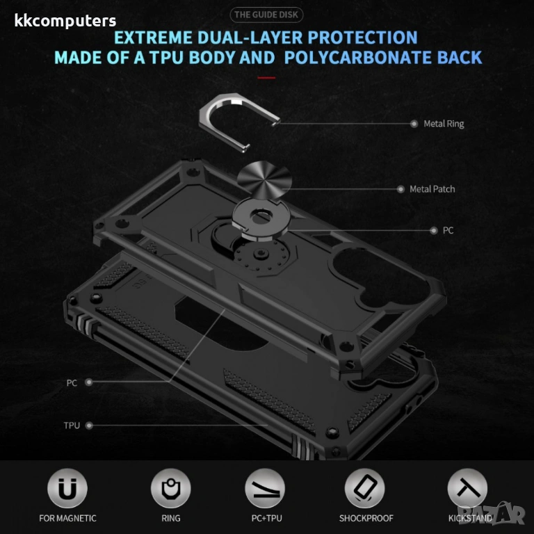Ключови функции: 360° въртящ се метален пръстен (стойка + опора за пръст), Военна защита (Military-Grade)
