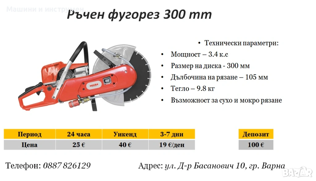 Бензинов ръчен фугорез 300 мм подходящ за рязане на бетон, асфалт, камък и тухли.