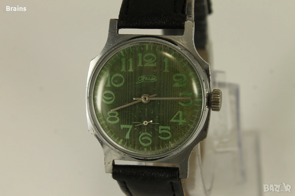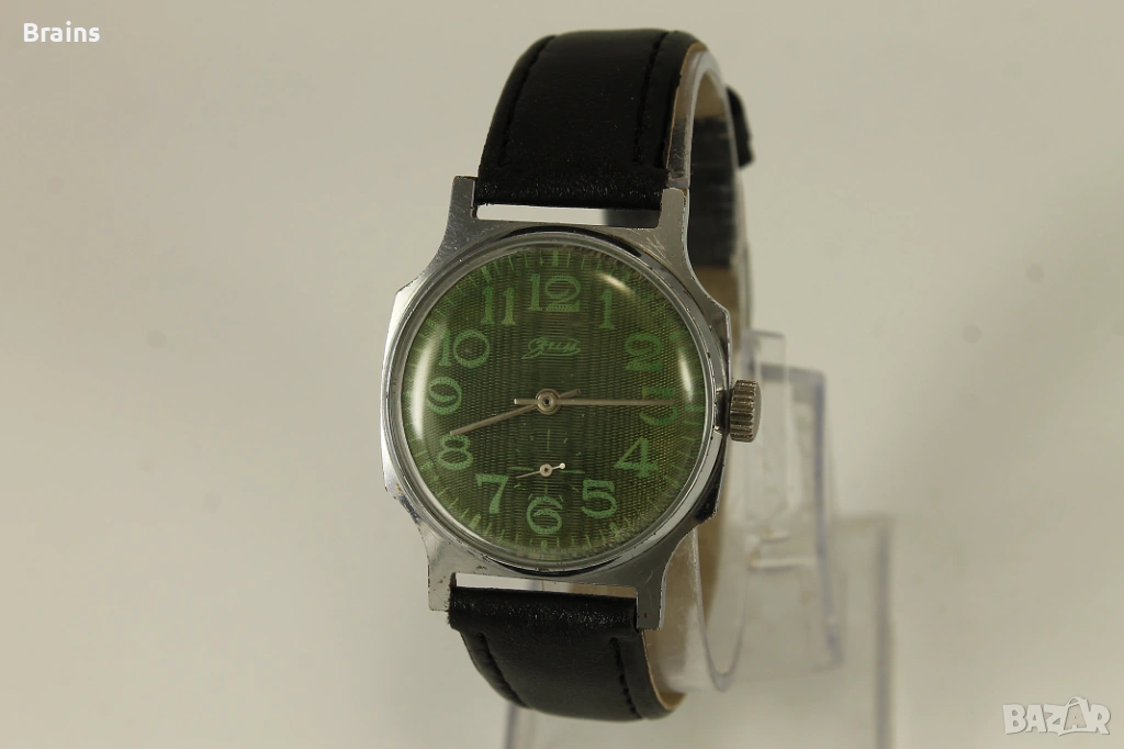 1970's ЗИМ Зелен Циферблат Стар Руски Ръчен Часовник → Обява 54055276