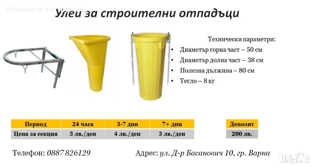 Улеи (Ръкави) за строителни отпадъци под наем → Обява 54055283