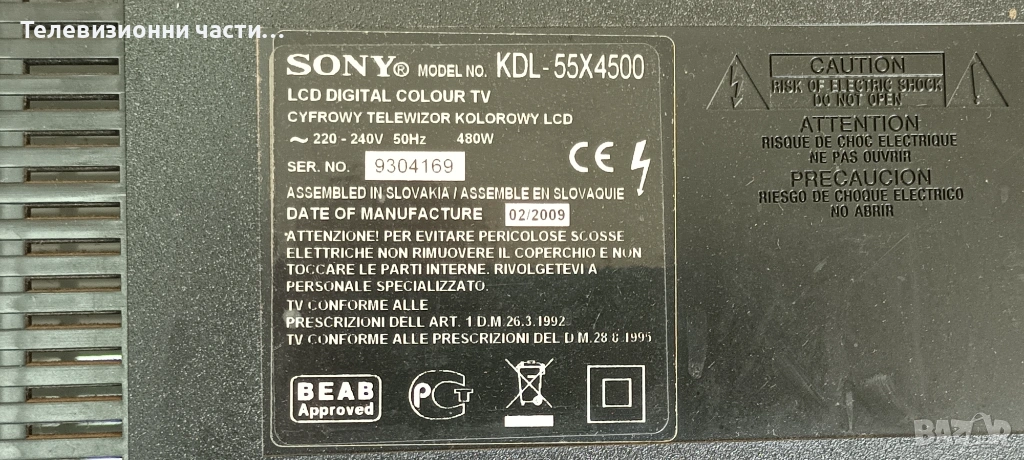 Sony KDL-55X4500 с дефектен борд LTY550HF01-001/1-877-271-12/1-877-581-11/1-877-272-11/1-876-560-11
