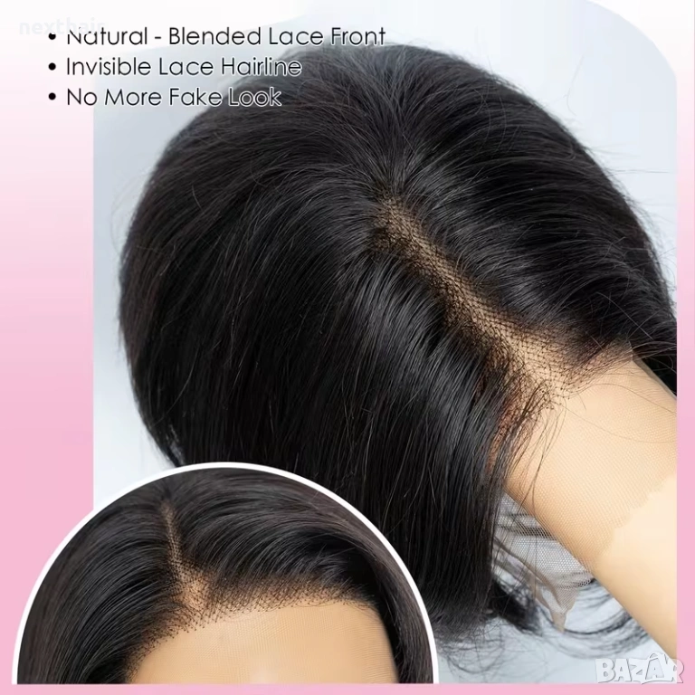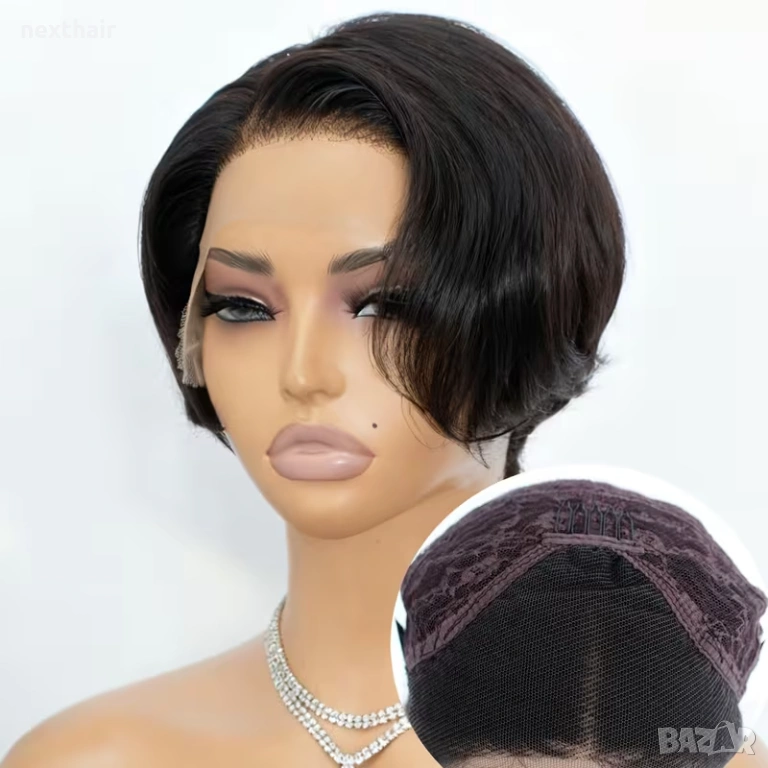 Къса черна перука с дантела 13x4 - скосен боб, естествен ефект → Обява 54055365