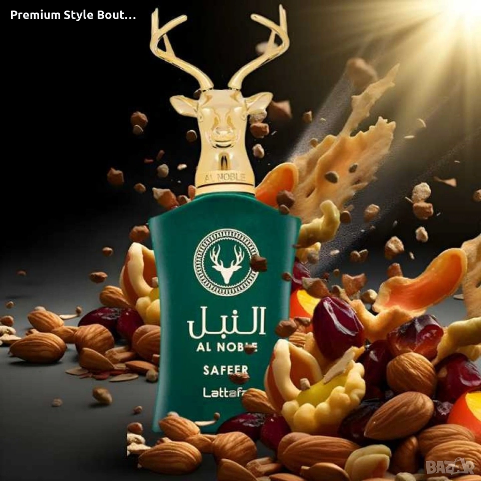 Оригинален Safeer Al Noble - Arabian Perfume by LATTAFA Връхни нотки: артемизия, бергамот Сърдечни нотки: билки Базови нотки: кедрови ядки, лабданум, кимион, пачули, тамян, хвойна, гваяково дърво Safer Al Noble е парфюм, който е подходящ за всеки повод, от ежедневието до специални партита или събития. Това е парфюм, който обогатява живота ви с необичаен, но приятен аромат. Той е универсален парфюм за мъже и жени, който фино съчетава пикантни, дървесни и билкови нотки, за да създаде дълбоко, но освежаващо обонятелно изживяване. Тази парфюмна комбинация е истинско удоволствие за любителите на парфюми, които харесват парфюми с ярки и уникални нотки.