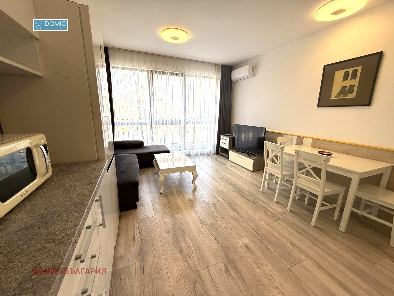Дневен тракт: Простор и светлина, напълно оборудвана кухня (фурна, котлони, аспиратор, съдомиялна, кафе машина), кът за хранене и удобен разтегателен ъглов диван.
