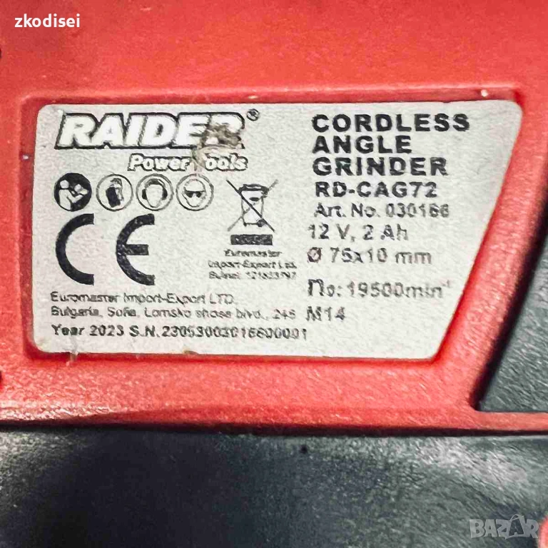 Акумулаторен ъглошлайф RAIDER RD-CAG72 → Обява 54055556