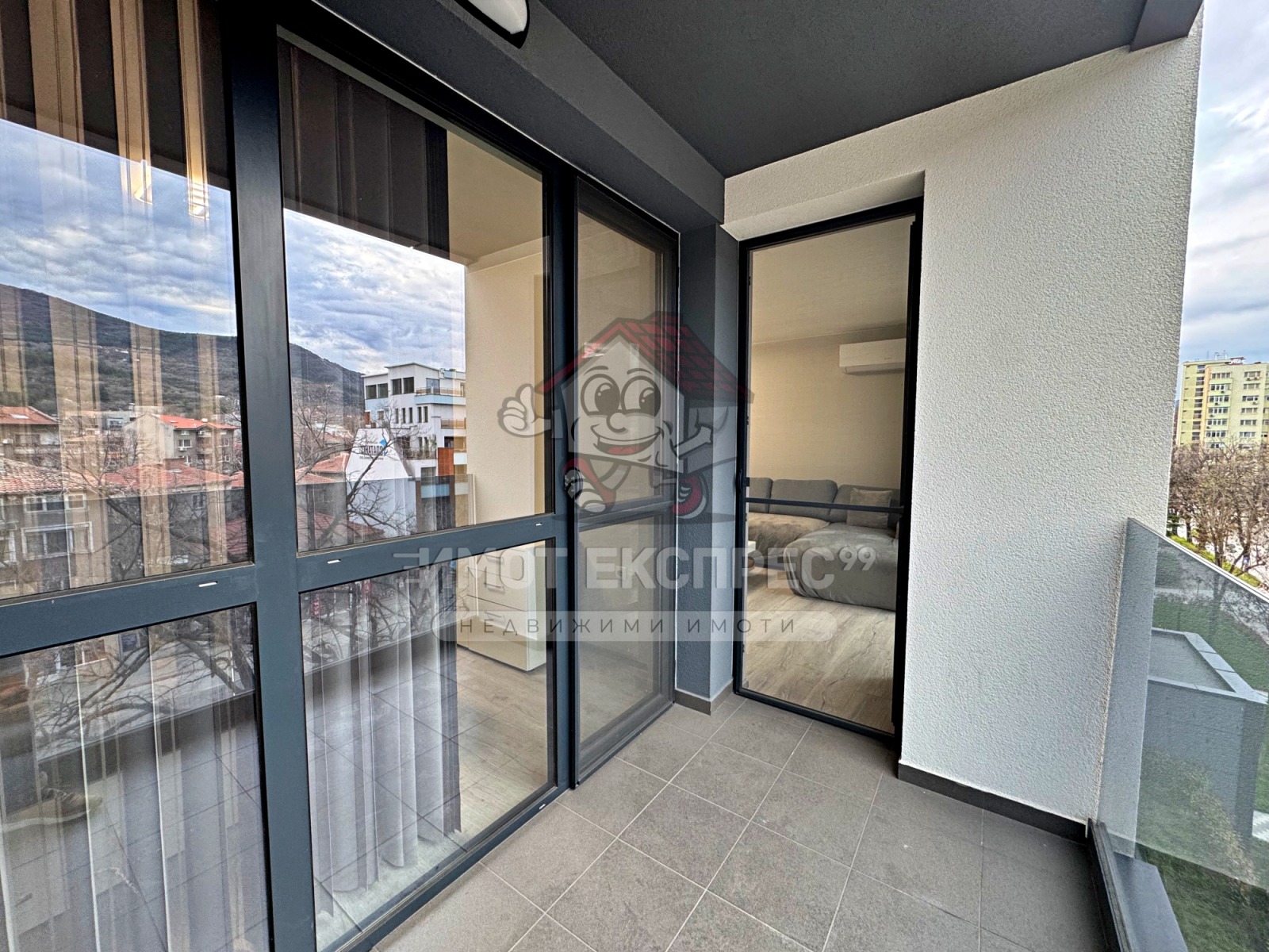 Обзаведен двустаен апартамент, ново строителство, състоящ се от дневна с кухня, спалня, баня и тоалетна, перално помещение и тераса, с панорамна гледка, към града и планината, за първи наематели. Нови мебели и уреди. В близост до гара, автогара, магазини, детска градина, хипермаркети.