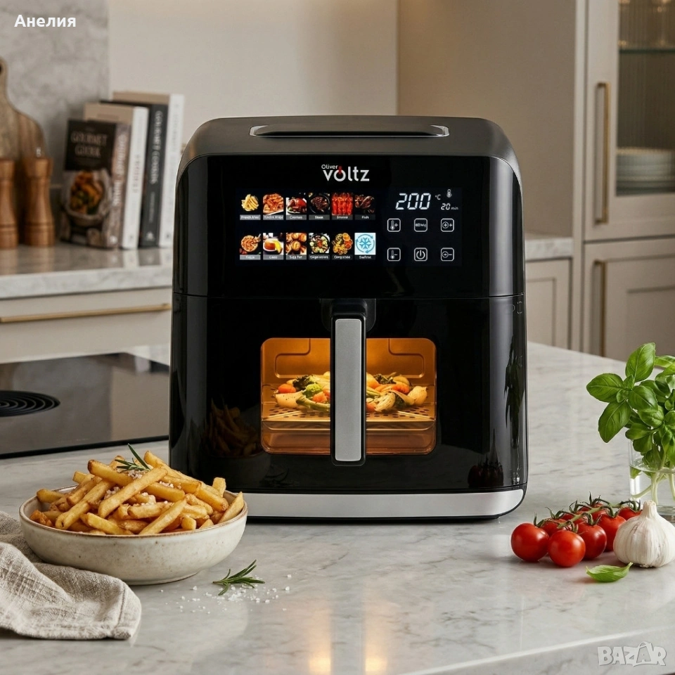 Еърфрайър Oliver Voltz OV51980CF, 1800W, 8 литра, Двоен нагревател, 12 Програми, LED дисплей