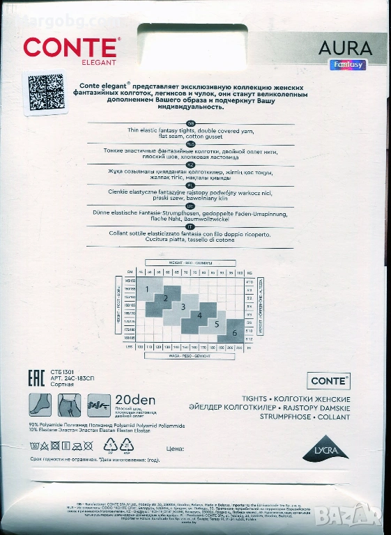 Чорапогащник фигурален Conte Aura Fantasy 20 den с малки точки във