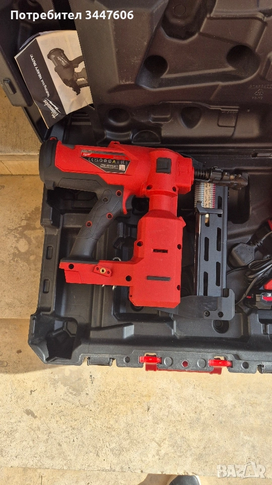 Внос от Англия , Машината е чисто нова с батерия 3 ампера , бързо зарядно и куфар . Работи със скоби от 38 до 51 мм , произведен 2023 година