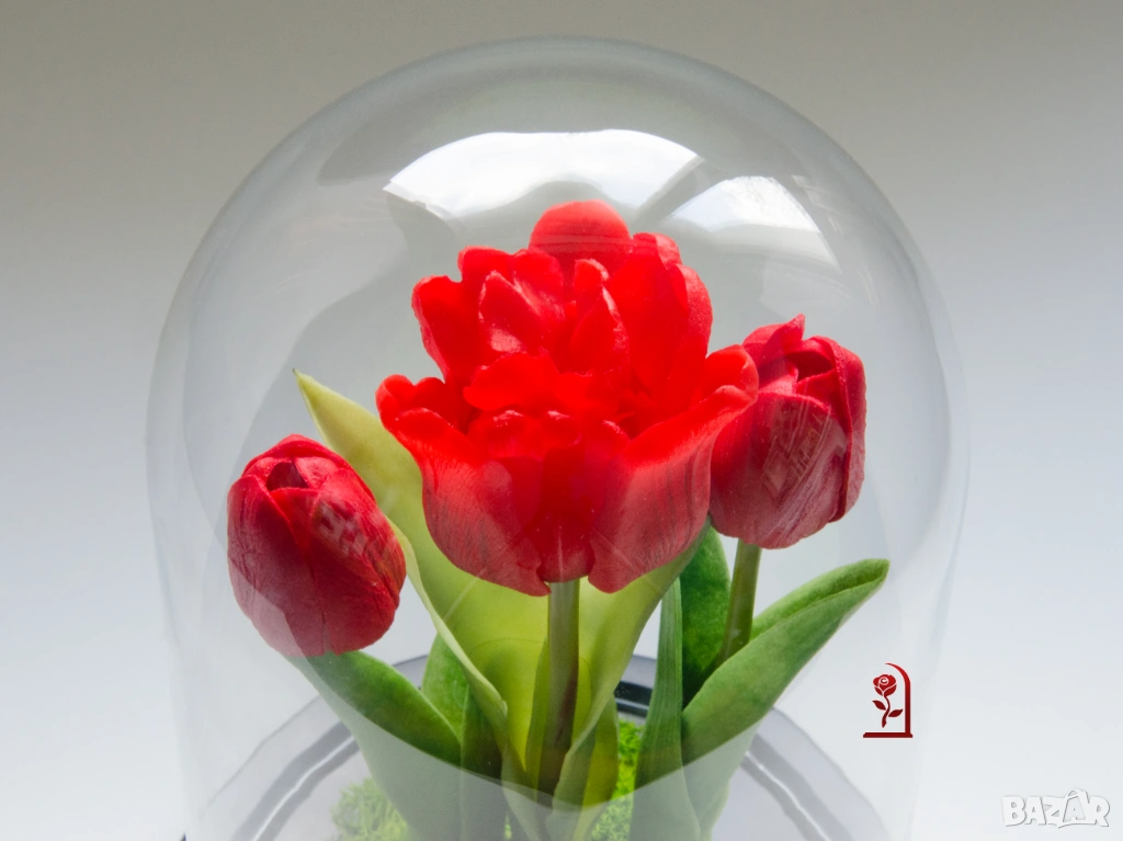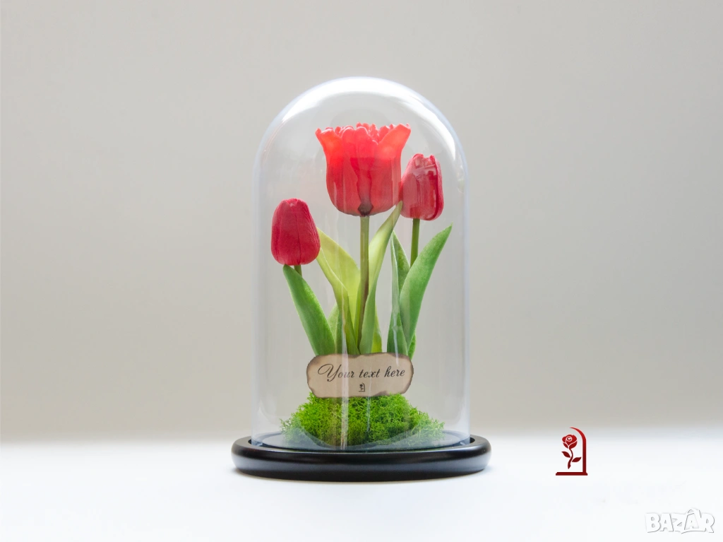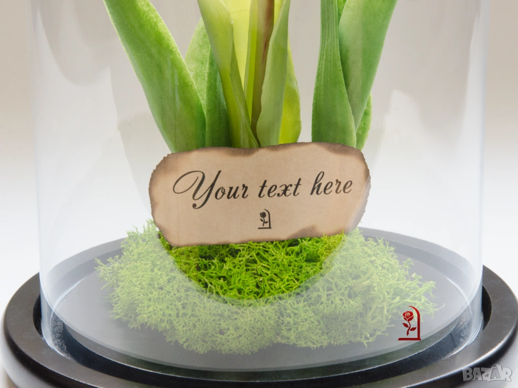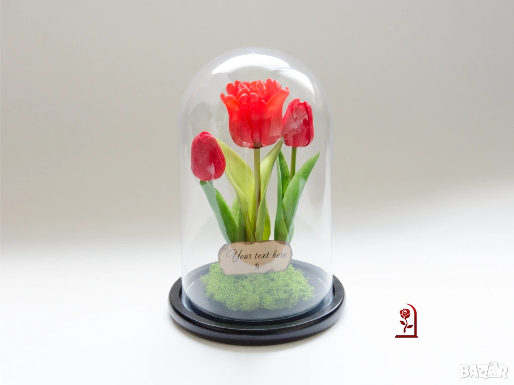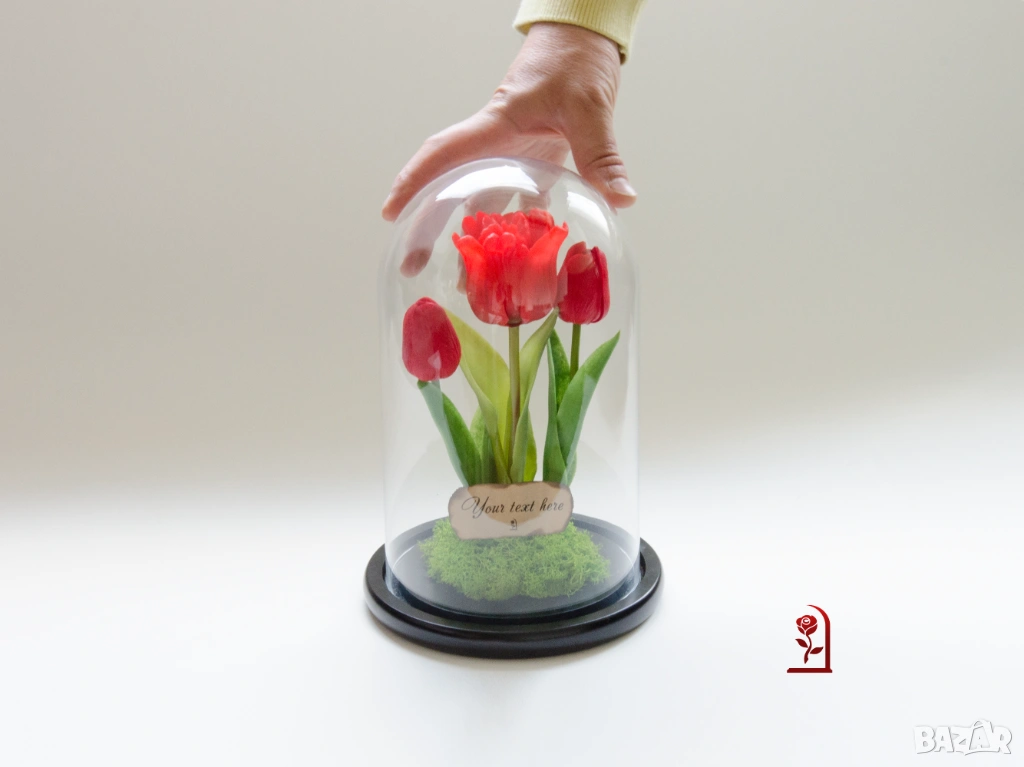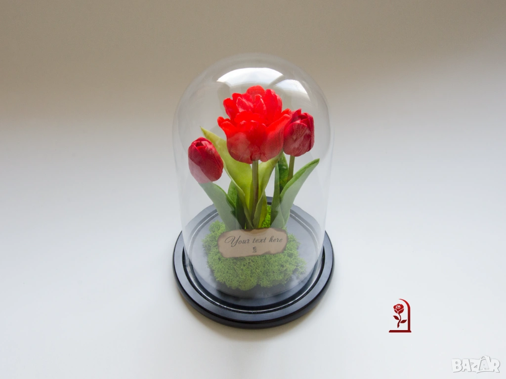 Ако търсите подарък с емоция и индивидуалност, тази композиция от вечни лалета и скандинавски мъх ще донесе усмивка и ще остане скъп спомен дълго време.