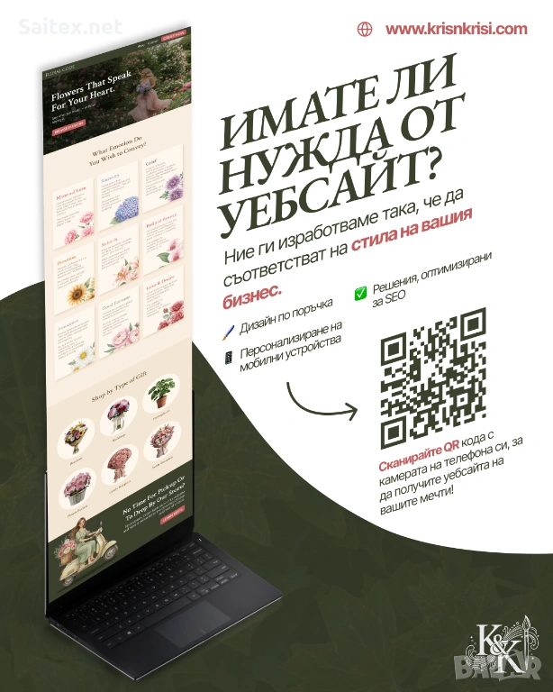 Със Saitex получавате модерен, бърз и професионален уебсайт за вашия бизнес буквално за минути. Без програмиране, без скрити такси и без да се съобразявате с чуждо работно време.
