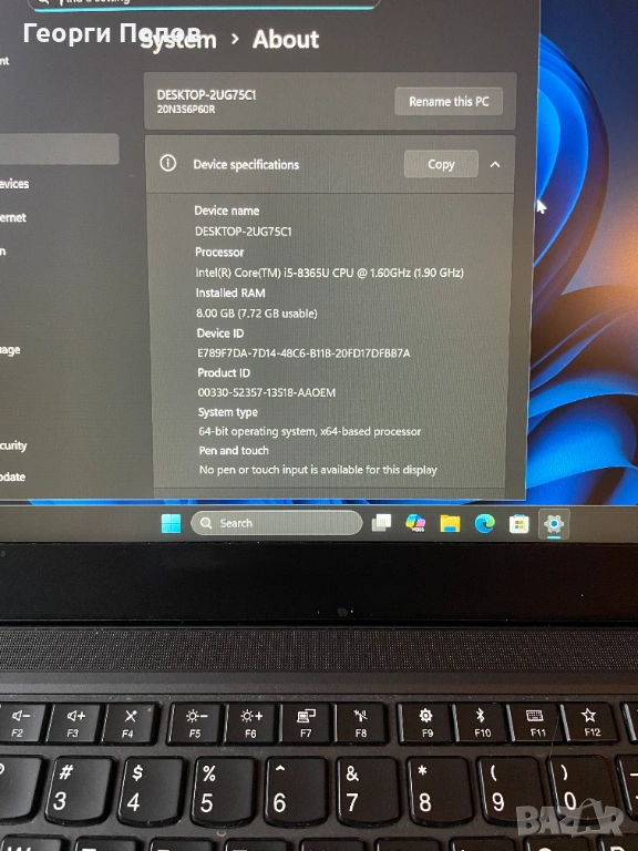 Лаптопът е в добро визуално състояние, с нормални следи от употреба и технически изряден. Преинсталиран с оригинален и лицензиран Windows 11 PRO, готов за работа.