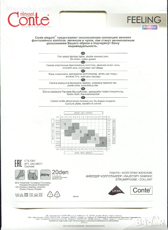 Чорапогащник фигурален Conte Feeling 20 den е стилен с малки и големи