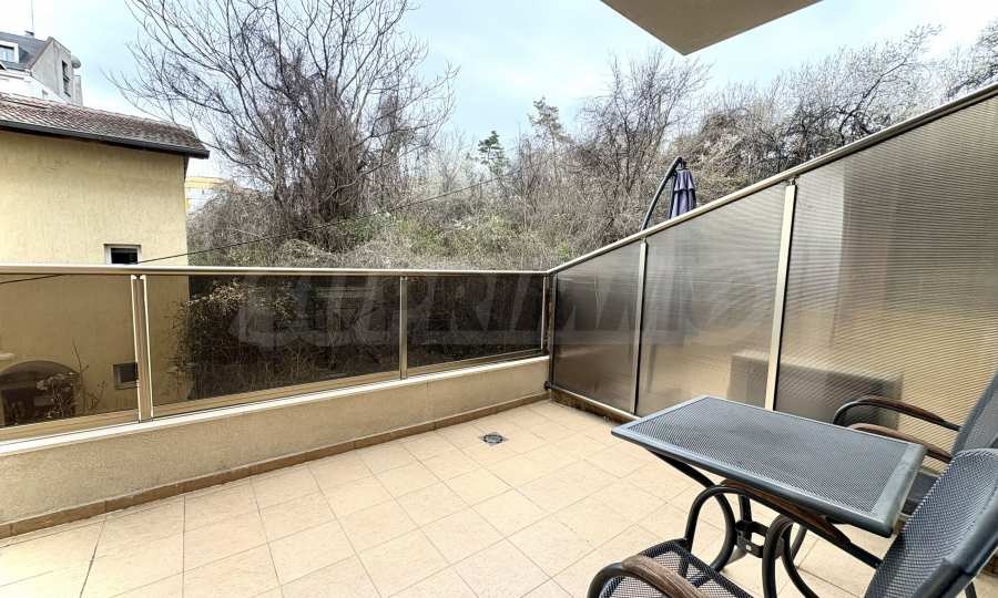 голяма тераса по цялата дължина на апартамента, с източно изложение, осигуряващо естествена светлина.