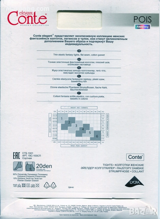 Чорапогащник фигурален Conte POIS 20 den е стилен с малки ,ромбчета
