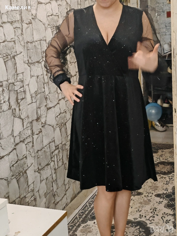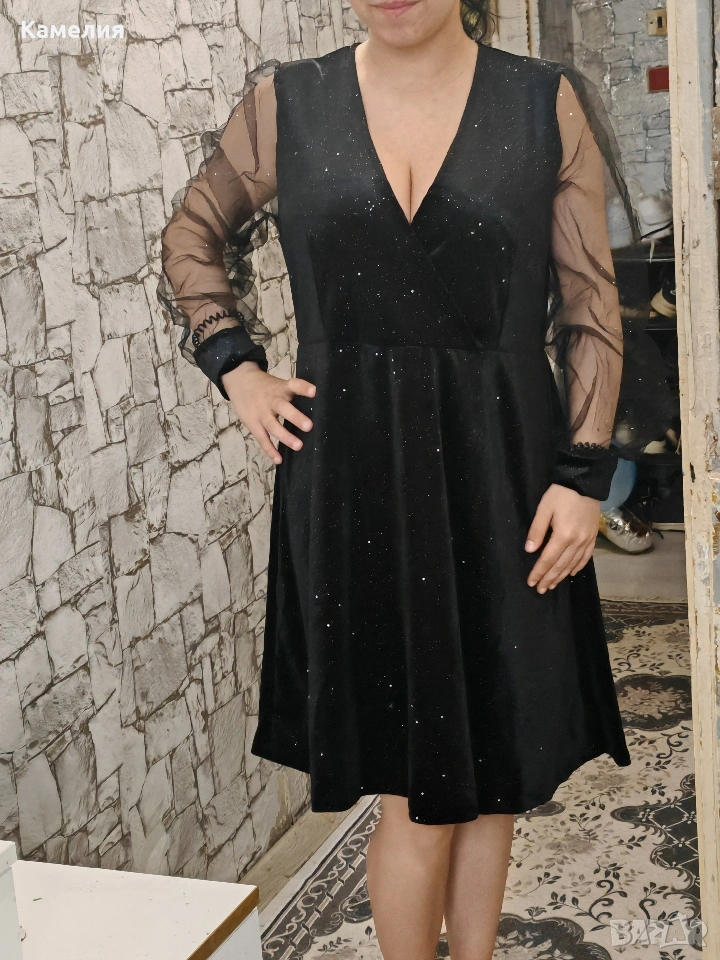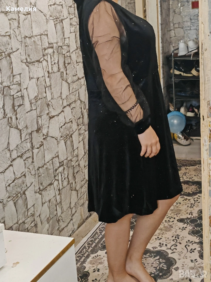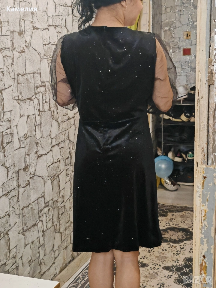 къса черна рокля с тюлени ръкави. → Обява 54056811